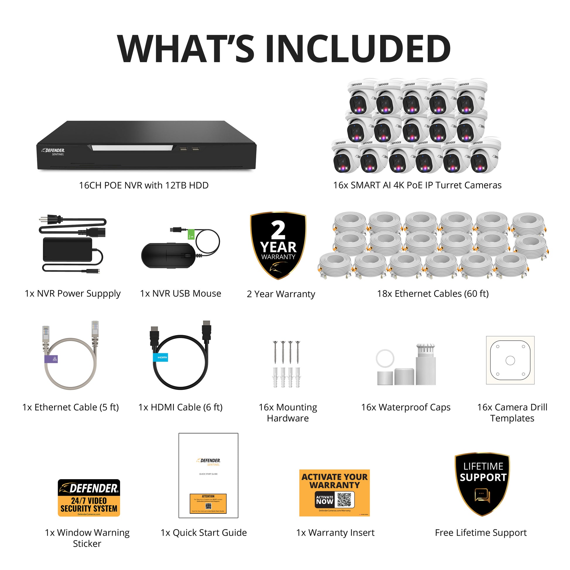 EXCLUSIVE BUNDLE: AI POWERED Sentinel Pro Turret 4K Wired 8CH NVR PoE System, 16 Metal Cameras & 12TB