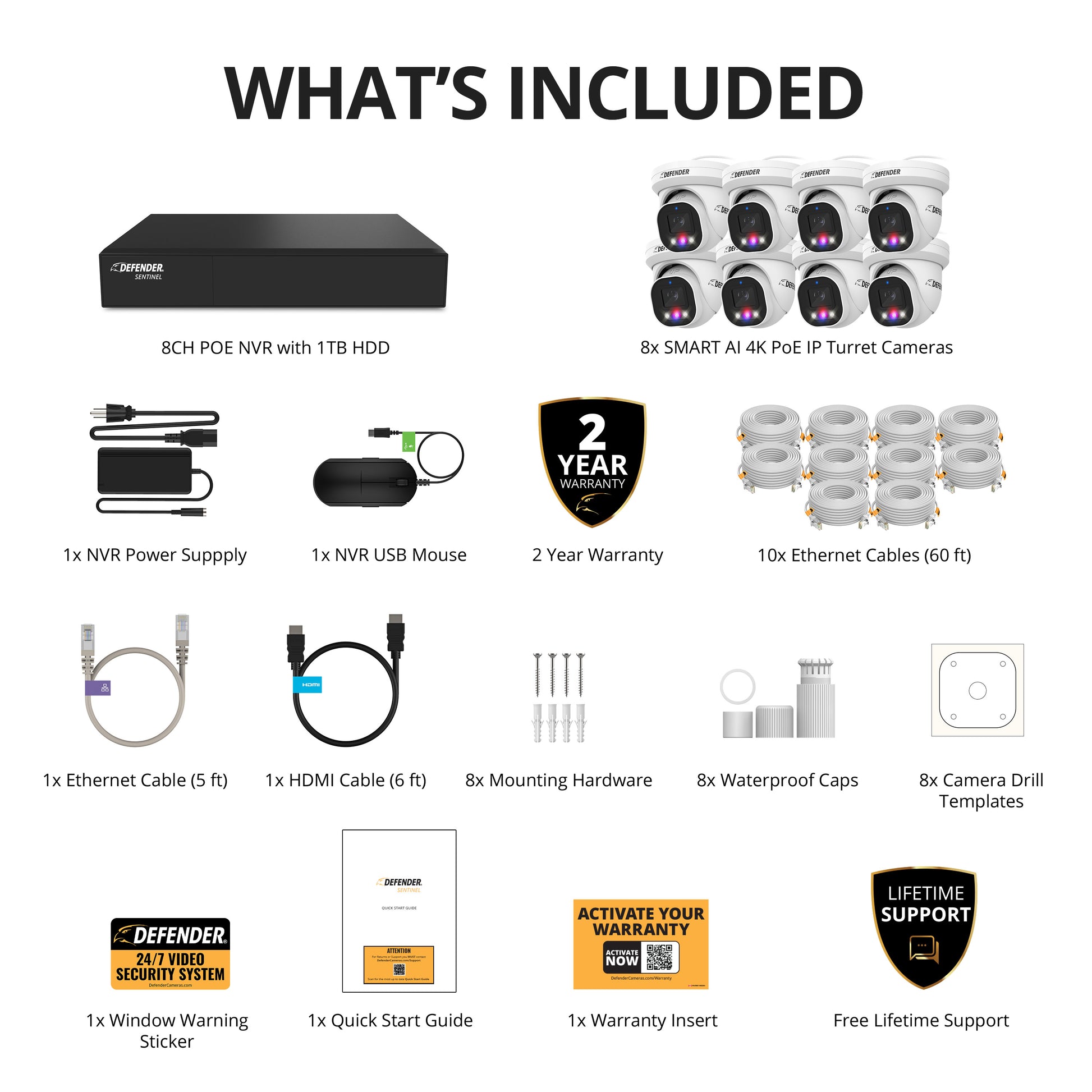 EXCLUSIVE BUNDLE: AI POWERED Sentinel Pro Turret 4K Wired 8CH NVR PoE System, 8 Metal Cameras & 1TB