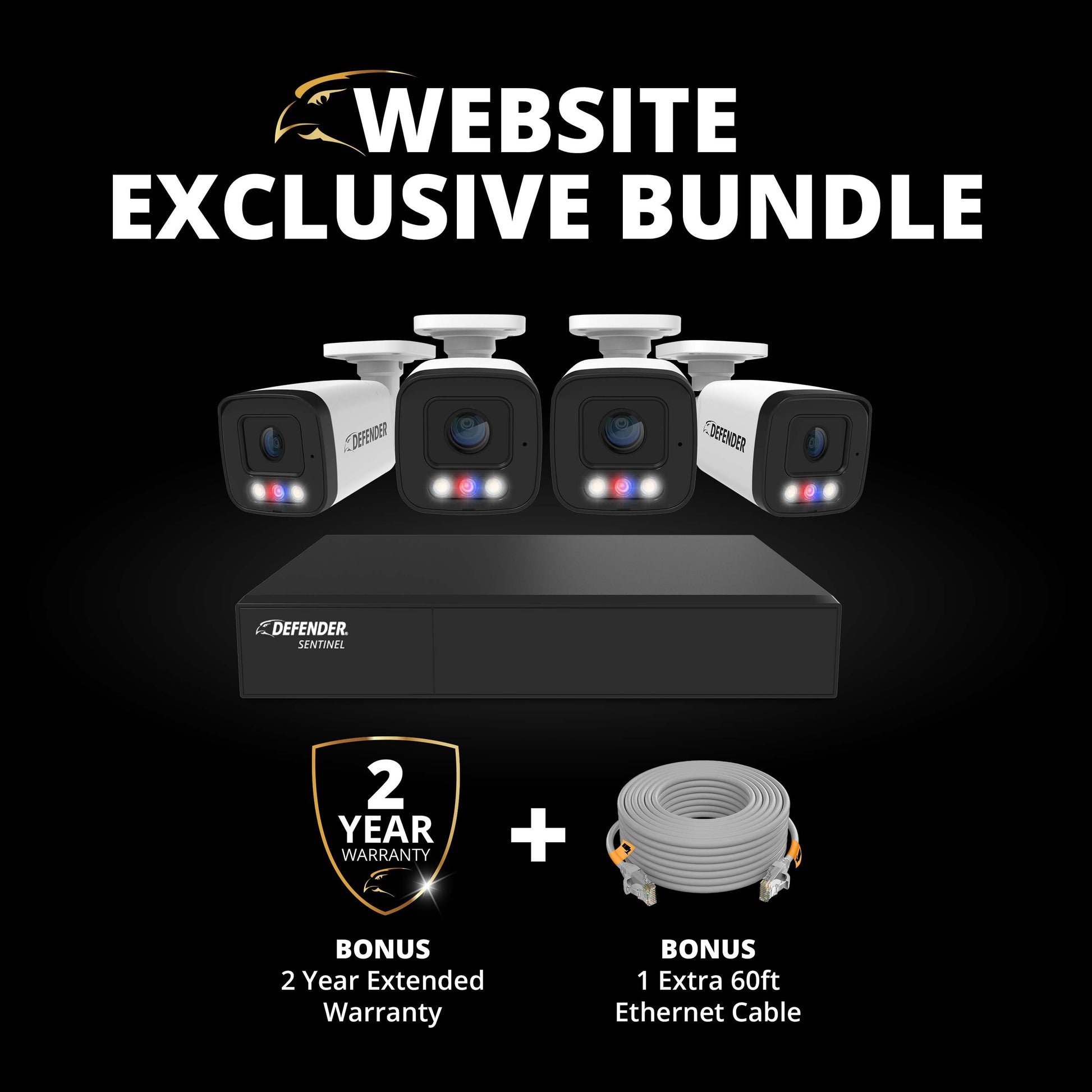 EXCLUSIVE BUNDLE: AI POWERED Sentinel 4K PoE NVR Wired Security System, 1TB HDD & 4 Metal Cameras