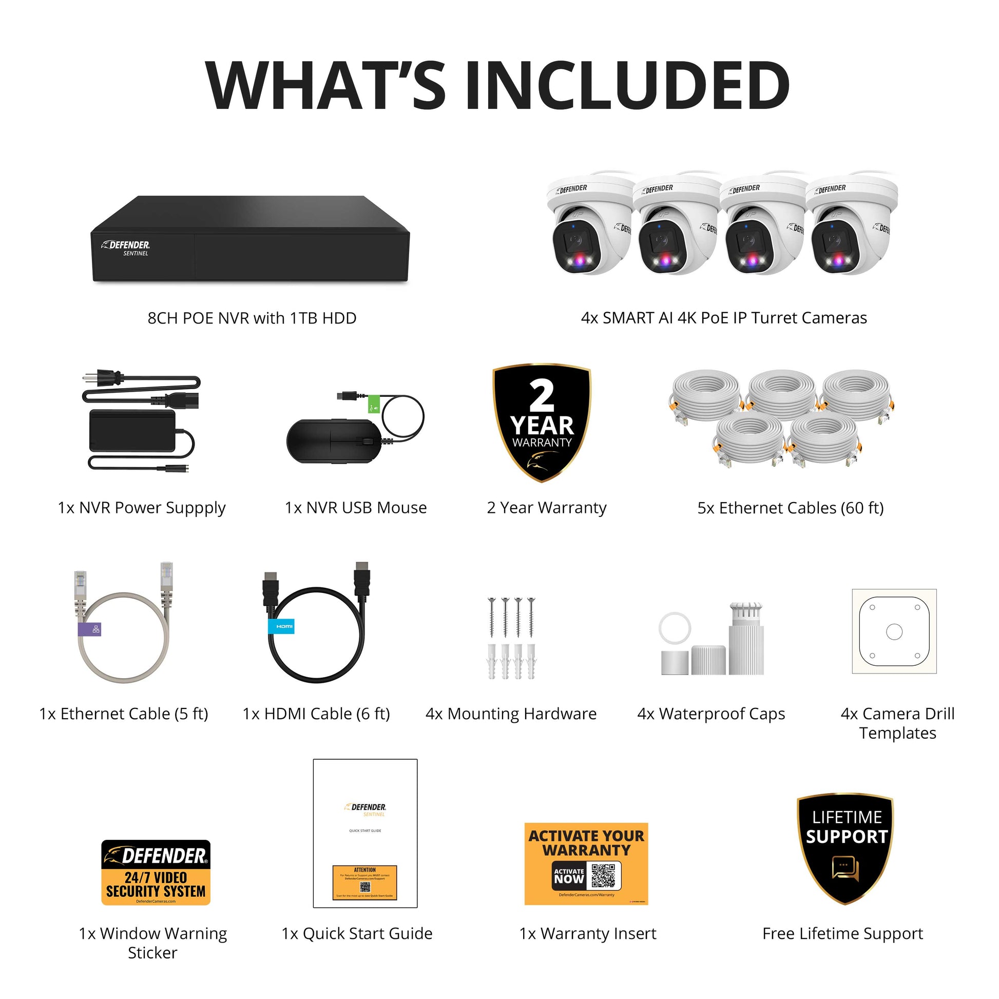 EXCLUSIVE BUNDLE: AI POWERED Sentinel Pro Turret 4K Wired 8CH NVR PoE System, 4 Metal Cameras & 1TB