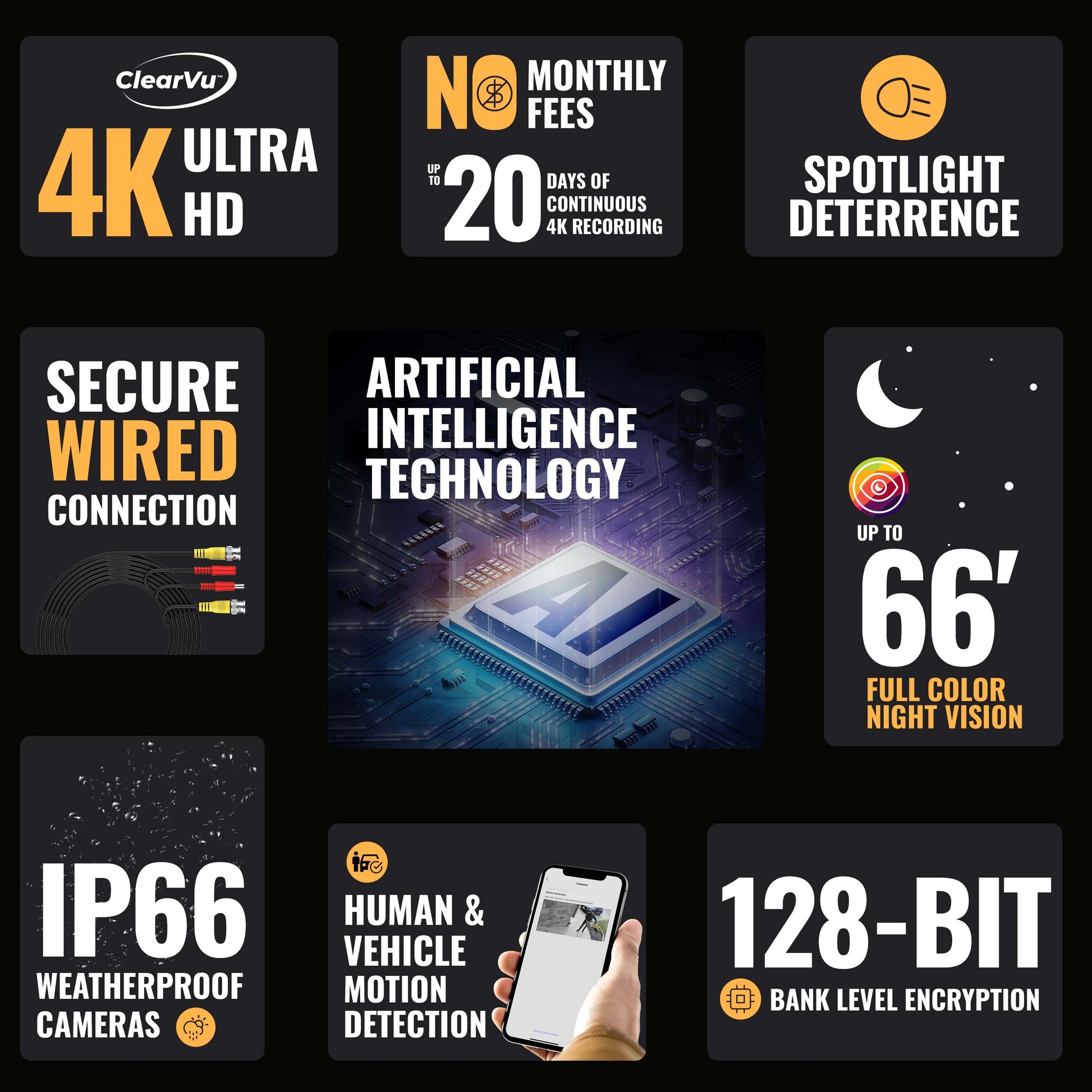 with 4K ultra HD. Super clear video enables you to clearly see faces and licence plates for ultimate peace of mind.