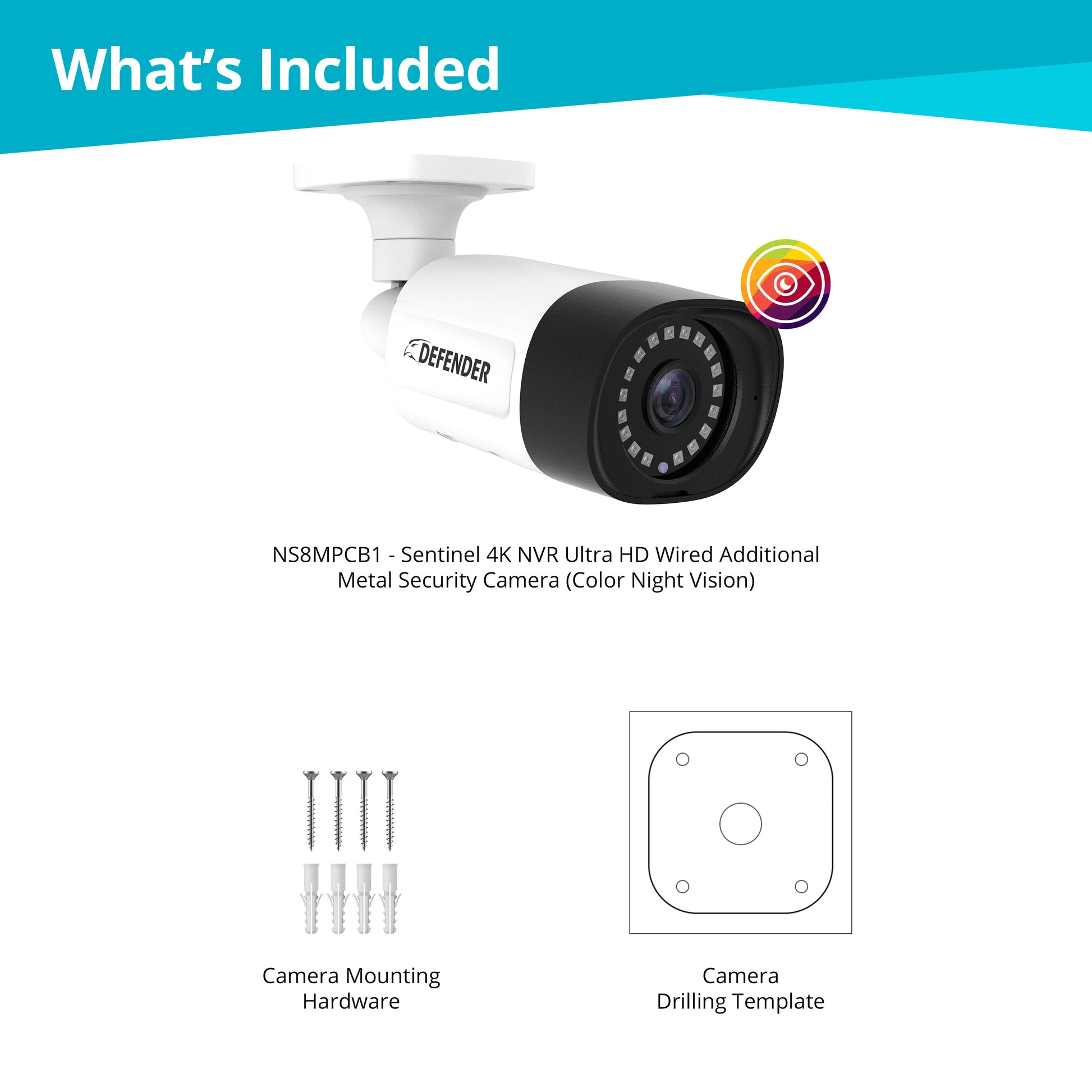 Additional Wired Ultra HD Security Camera With Color Night Vision For 4K Sentinel NVR Security System